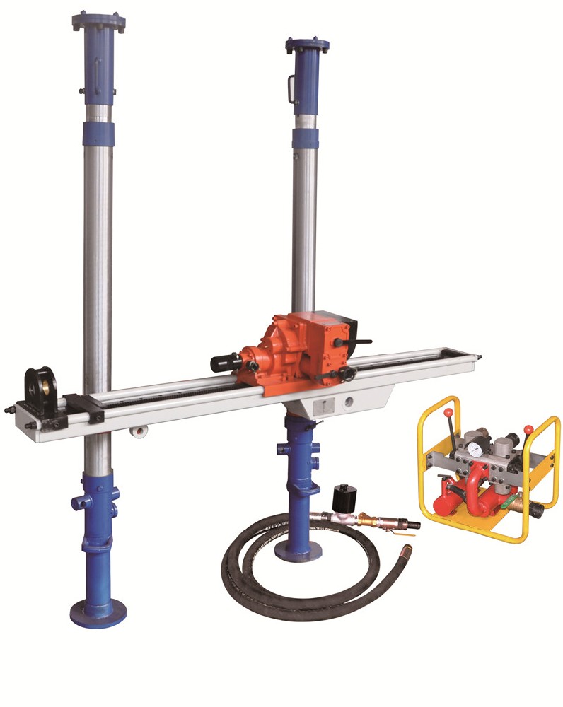 一般礦井在掘進前都要進行超前探放水,利用氣動架柱鉆機等探水設備打幾十米甚至一百米的探水孔,根據(jù)鉆頭的推進速度、巖屑成分等地質資料,初步斷定巷道周圍的水質水量,因此氣動架柱鉆機是預防突水、涌水等災害的發(fā)生主要工具。
